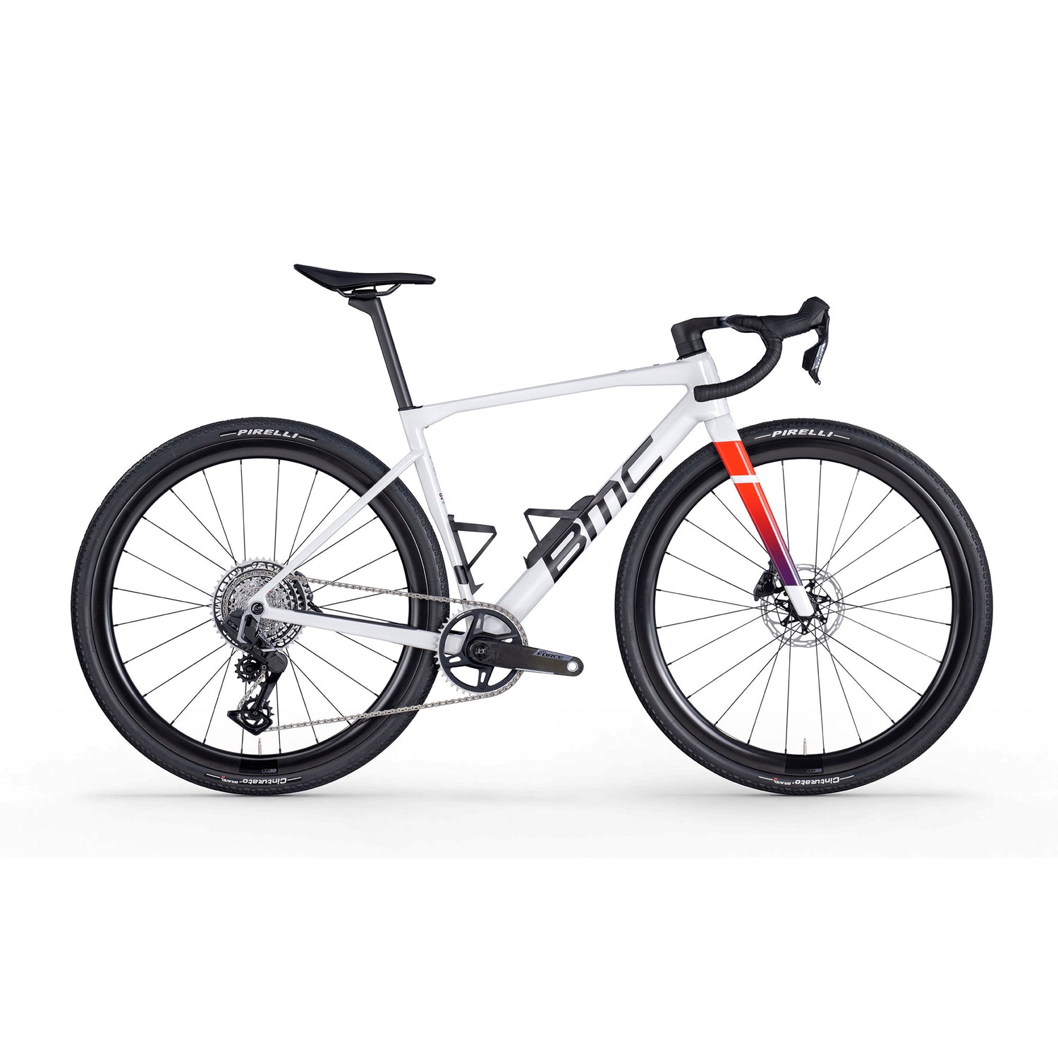 - Wheels & Tires: BMC CG39 carbon wheels (39 mm × 25 mm internal), Pirelli Cinturato Gravel H 40 mm, up to 44 mm clearance